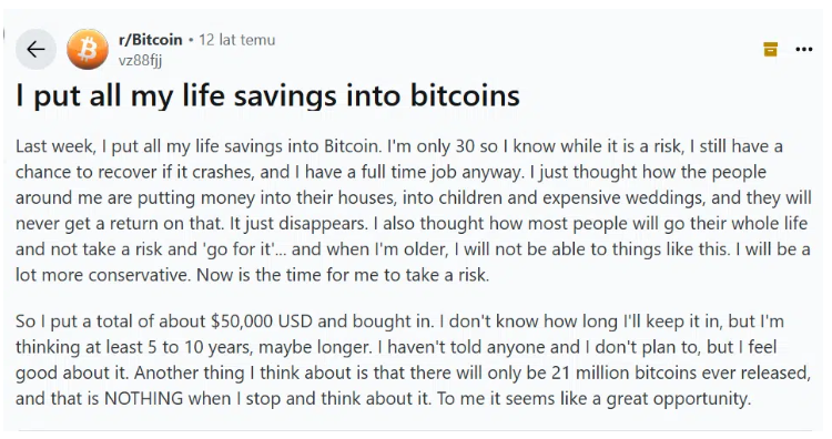 In a rediscovered Reddit post from 2013, an anonymous 30-year-old user detailed a decision that would later capture the attention of the crypto community. The user revealed that he had invested all his savings, approximately $50,000, into Bitcoin. At that time, Bitcoin traded at around $250 per coin, making his purchase equivalent to roughly 200 BTC.