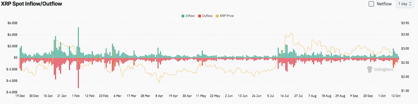 Data from October reveals another major outflow, which coincided with XRP’s price dipping below $2.50. This price movement implies that investor confidence may be waning, as the market becomes more uncertain about XRP’s future price direction.